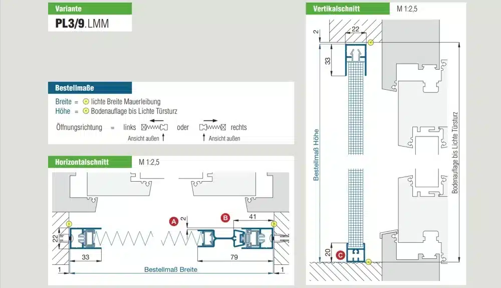 PL3/9.LMM (Bis 1,3m Breite. Mit Rahmen & hoher Bodenschwelle)