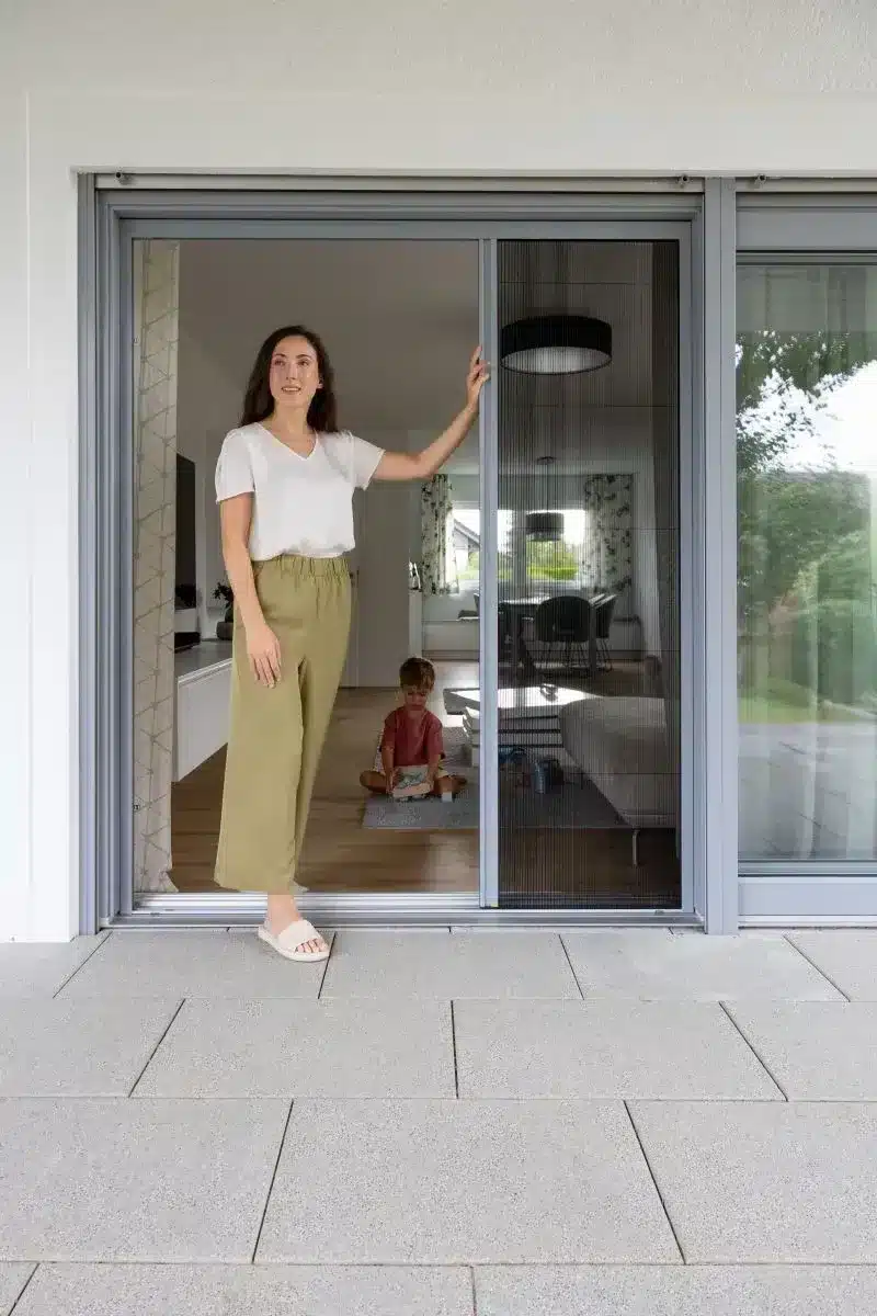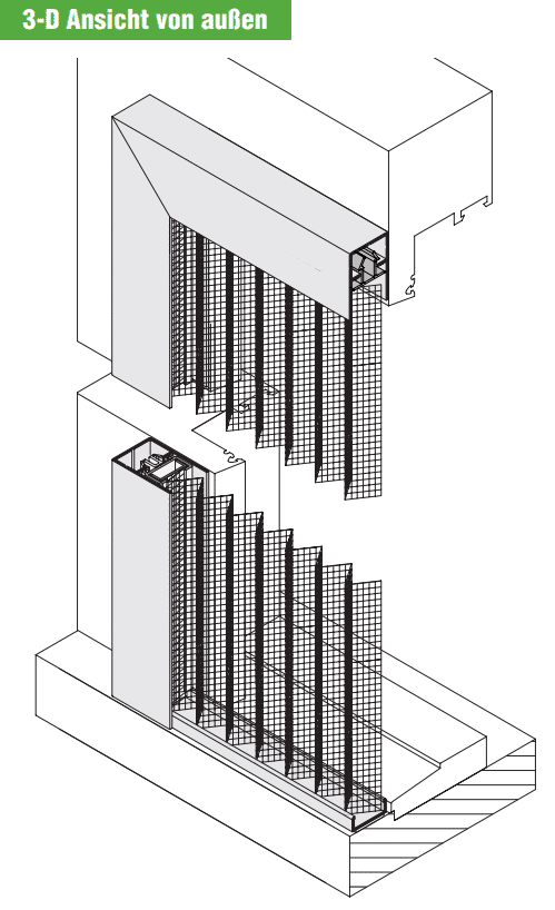 Plissee mit Montagerahmen, unten geschlossen – passend für flächenbündige und flächenversetzte Fenster und Türen.