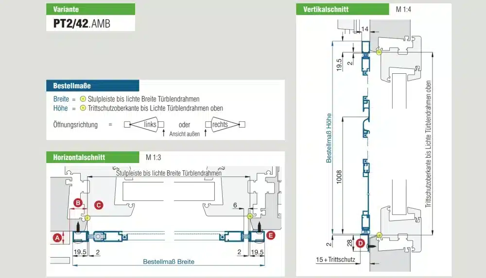PT2/42.AMB – Fliegengitter-Stulp Tür mit Montagerahmen