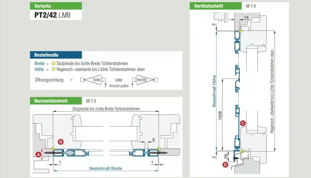 PT2/42.LMB – Montagerahmen mit Winkelprofil für flächenversetzte Stulp Türen