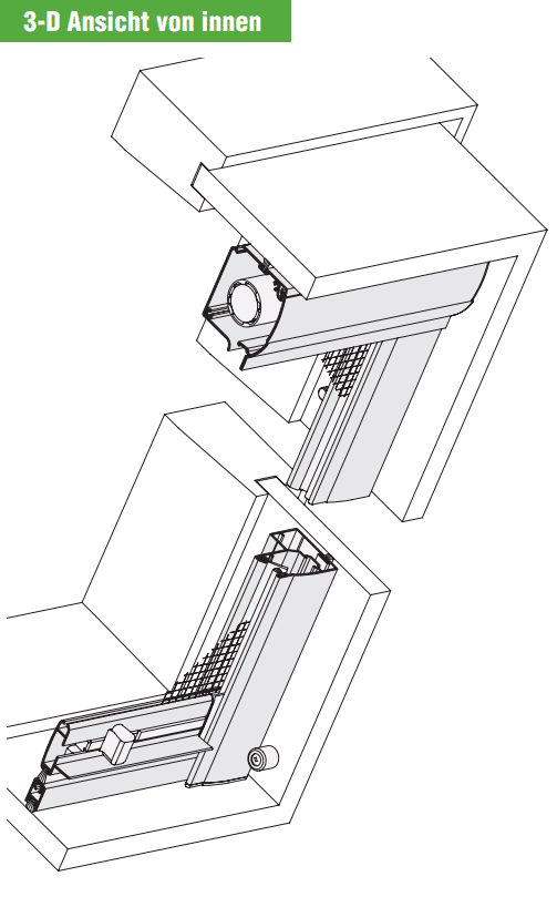 Perfekte Lösung für Dachfenster: Das Rollo ist unten geschlossen, oben mit Federstiften fixiert und unten mit Auflagerundteilen ausgestattet – ideal für Fenster mit geradem Innenfutter.