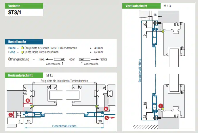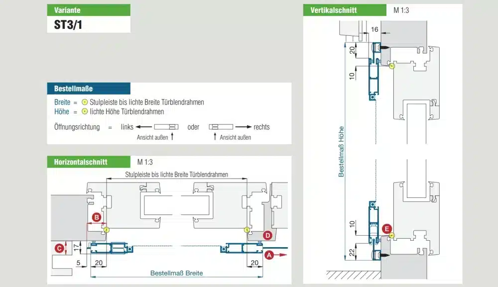 Schiebeanlage-1-flügelig mit 1-facher seitlich offener Laufschiene – ideal für Stulp- und Schiebetüren mit umlaufendem Blendrahmen.