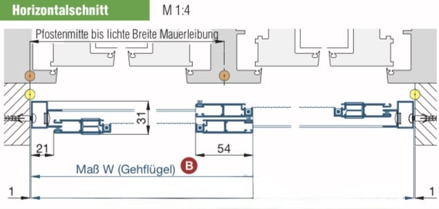 ST3/51.LMM – Schiebeanlage für Stulp- und Schiebetüren – 2-flügelig.